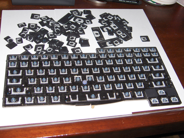 After a recent Sprite spill on my laptop, I got it into my head that I wanted to clean the laptop’s keyboard. On Saturday I finally got around to doing it. I removed the keyboard from the laptop, removed each key, and then cleaned everything with Q-tips and water. I even made a diagram beforehand to show me where all the keys should go once I finished. It took a LONG time. If my warranty hadn’t expired a long time ago, this probably would have voided it. I think that next time I should just buy a new laptop instead.